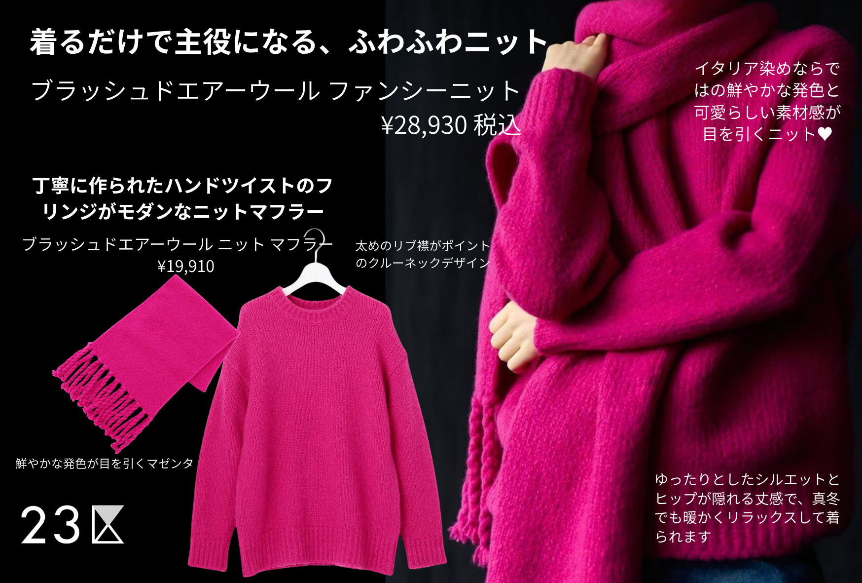 大人の女性のライフスタイル全体を提案するブランドを展開するマツオインターナショナルの「慈雨」「io comme io」「Lucruca」「i+mu」「kawa-kawa」「FiORi」を中心に「ヤッコマリカルド」「FUGAFUGA」「Se ninon」「SOEN}「Jenny garcon」など一流アパレルメーカーブランド商品をそろえる東北唯一のM2+(エムニプラス)山形店として運営しております。